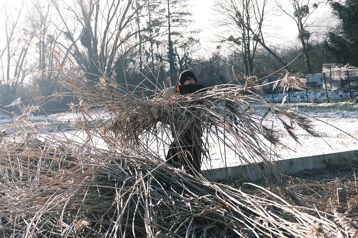 En réalisant l’inventaire des ressources biosourcées du Parc Naturel de Lorraine, nous nous sommes rendus compte que les roseaux prélevés annuellement dans les stations d’épuration à filtres plantés, n’étaient presque pas valorisés. Leur recyclage dans un matériau de construction devenait donc la valorisation d’un déchet vert et une potentielle matière première gratuite.